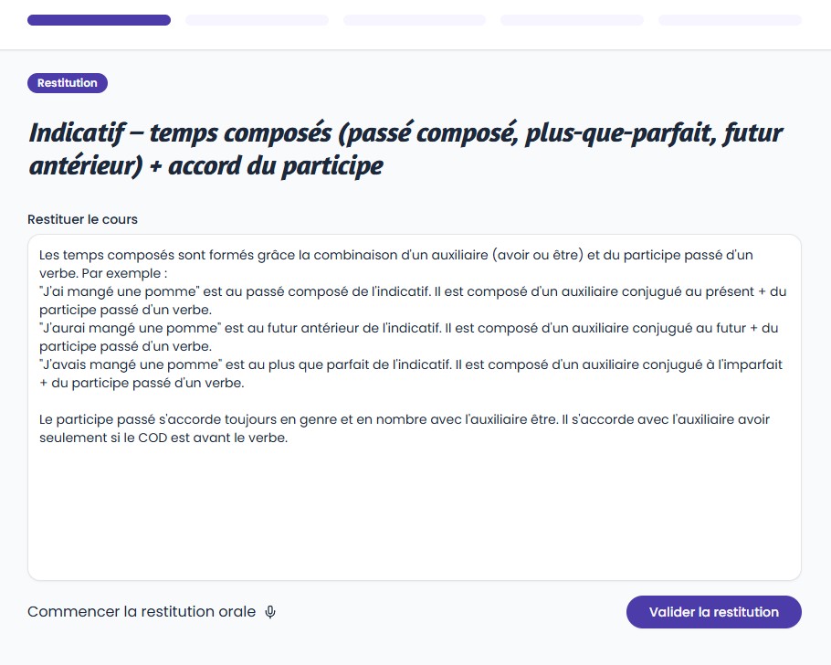 Le processus est simple et puissant. D’abord, votre enfant apprend sa leçon. Ensuite, vient la phase cruciale de restitution : il doit expliquer la règle ou l’appliquer à l’oral ou à l’écrit face à l’ordinateur. C’est ici que l’intelligence artificielle entre en jeu. Elle analyse la production de votre enfant, identifie avec précision ses erreurs et, surtout, la nature de ces erreurs. Est-ce une confusion entre homophones ? Un problème d’accord du participe passé ? Une méconnaissance d’une exception ?